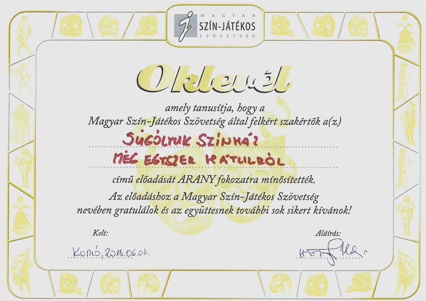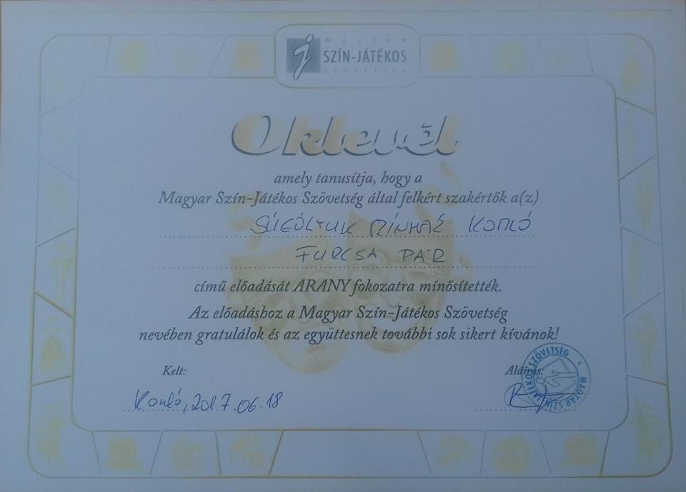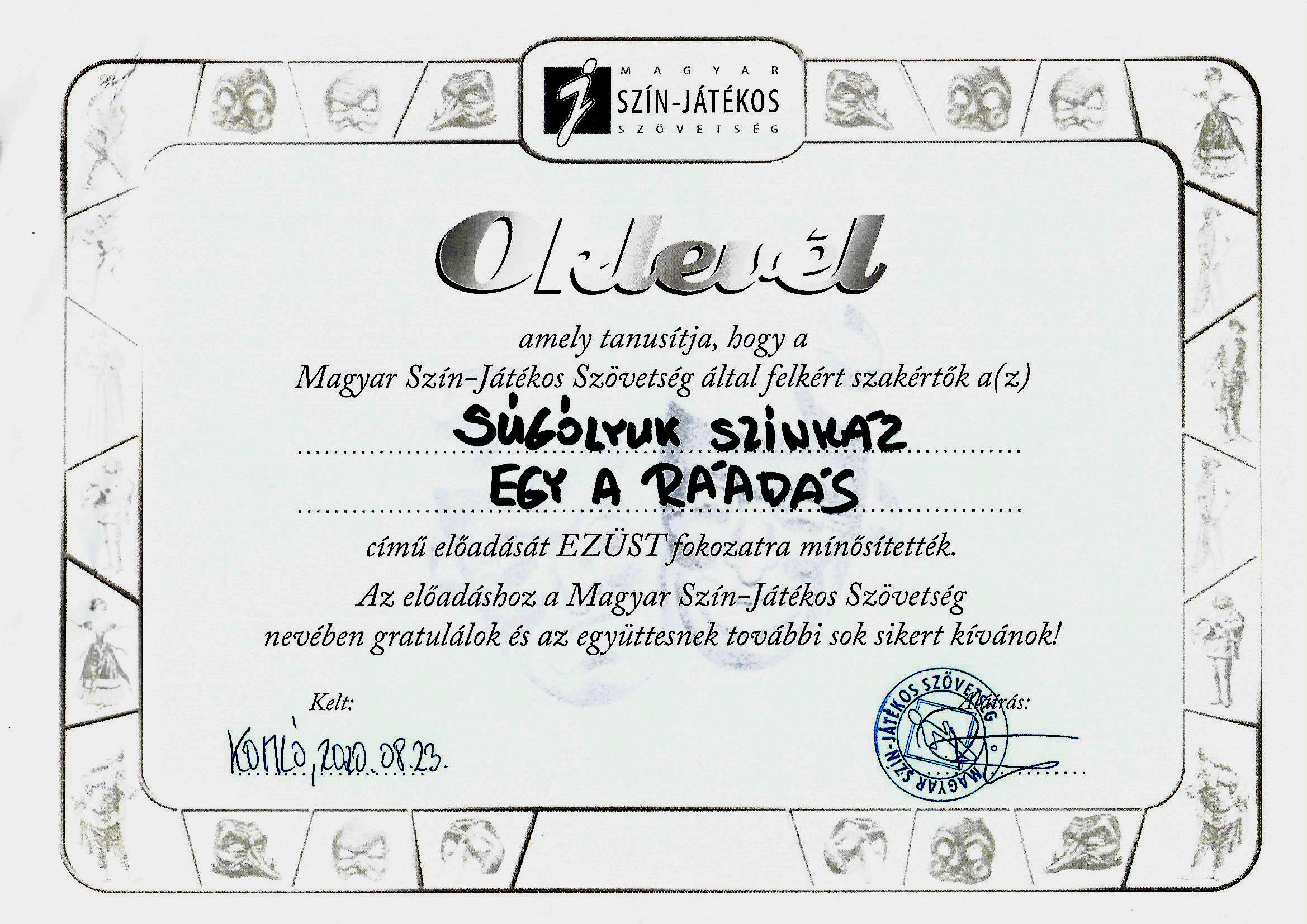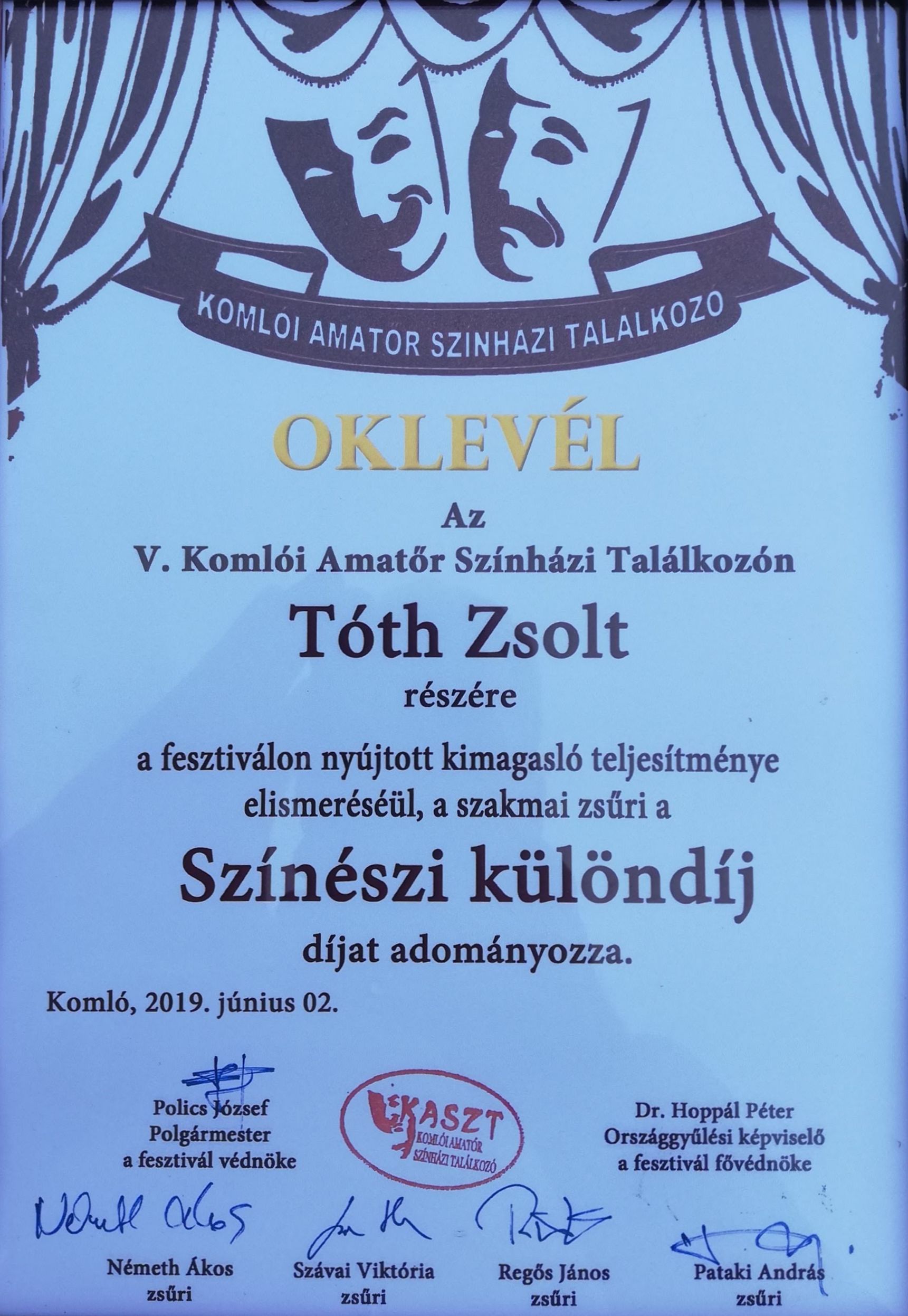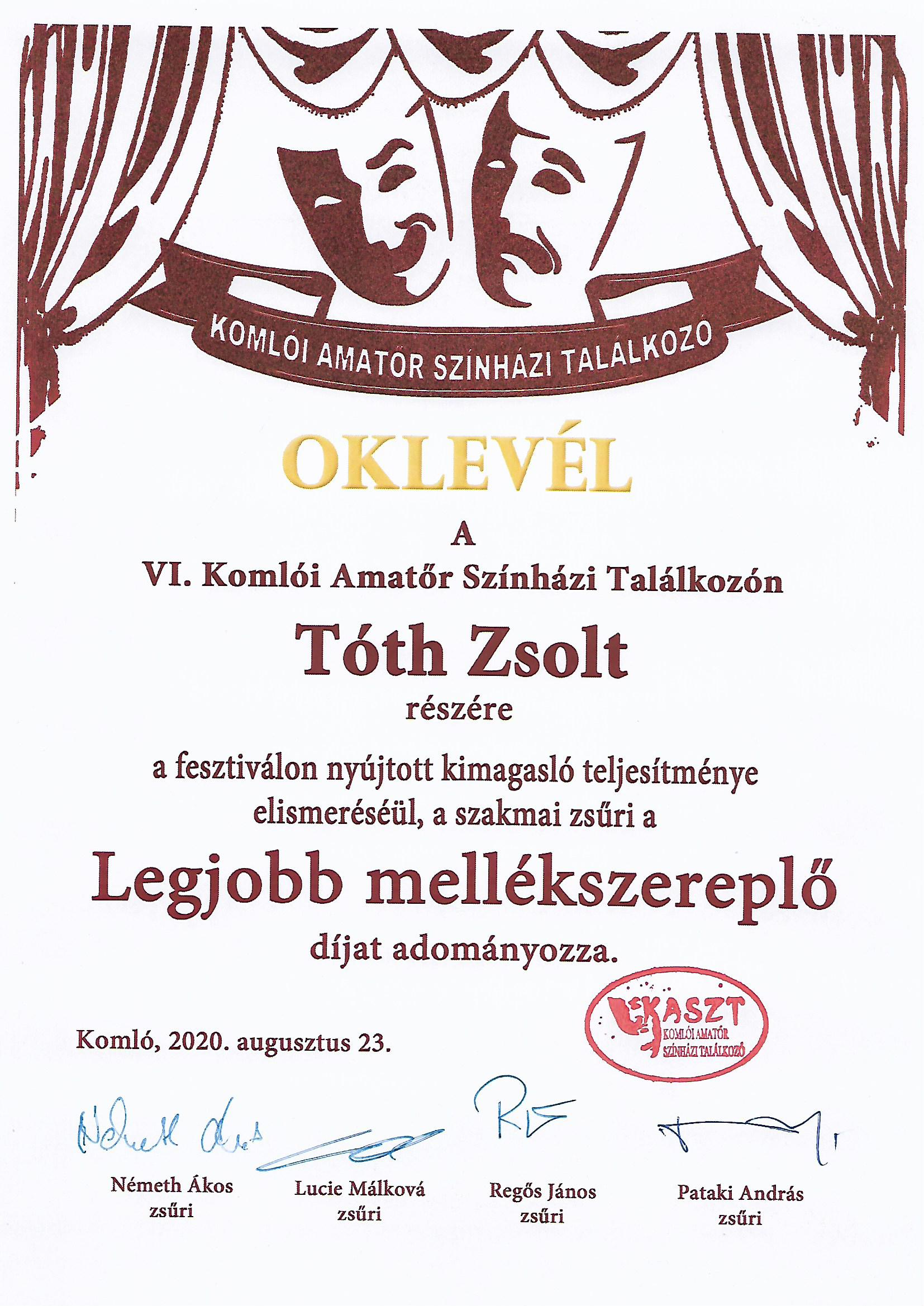 A VI. KASZT-on (2020) társulatunk Ray Cooney: Egy a ráadás című komédiáját mutatta be, melyet a Magyar Szín-Játékos Szövetség EZÜST minősítéssel díjazott. A fesztivál LEGJOBB MELLÉKSZEREPLŐje Tóth Zsolt lett.
